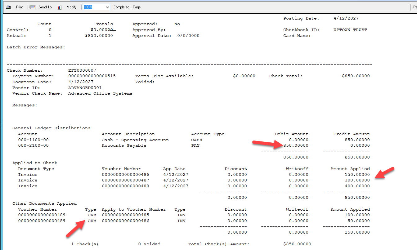 Have you ever received a request to produce a report or SQL view that shows all items included on a Remittance or Check stub? The SQL view that you have available works awesome to put in a Check Number and see the Invoices being paid off but I would like to also see the Credit Memos that are paying off Invoices that were included on the Remittance at the time the check is printed. Any guidance you can provide would be very helpful. Thanks!